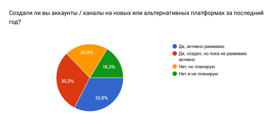 - 84% блогеров (63% уже расширяют присутствие, 21% рассматривают такую стратегию) переходят на мультиплатформенную модель работы.