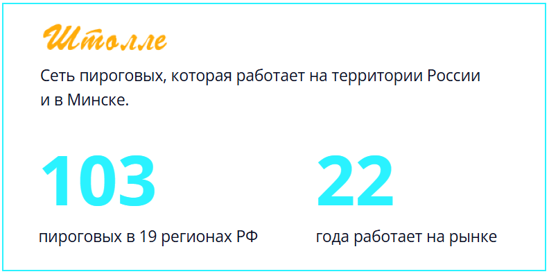 ex-СМО и СРО «Штолле»Попробуйте забить «пироги» или «заказ пирогов» в поиск. Скорее всего, «Штолле» будет на первой странице поисковой выдачи — нам в этом помогает SEO-оптимизация. На этой же странице будут конкуренты, но кроме них — агрегаторы и «Отзовик», с которым мы тоже работаем.
