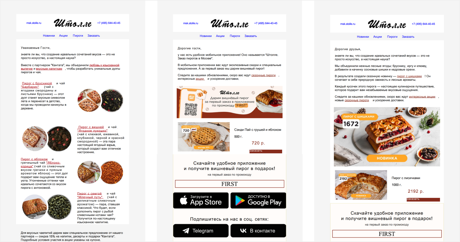 Это направление я оценила еще в пандемию. Тогда я работала в Dodo, и там оно работало хорошо. Клиенты с приложением — лояльные клиенты, они не ищут в поиске, где и что заказать. Иконка приложения прямо на экране телефона. Поэтому я начала работу в «Штолле» с рекомендации запустить приложение. Мы его создали и с тех пор направляем клиентов в этот канал.