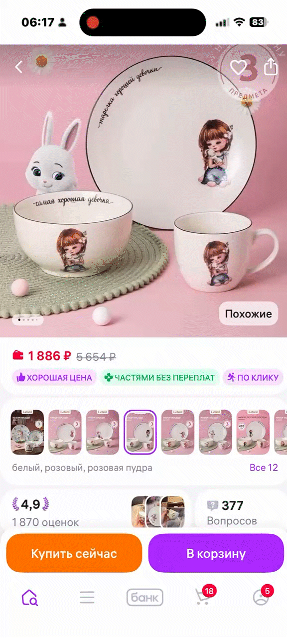 Чтобы компенсировать утрату, пошли выбирать новый набор посуды на Wildberries. И, как это обычно бывает, «просто посмотреть» быстро превратилось в залипание в ленте.